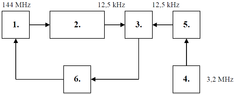 96. Na rysunku przedstawiono schemat stabilizacji PLL w formie ponumerowanych, ale nieopisanych bloków. Blok 4 to: