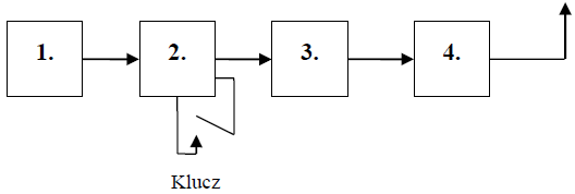 Na rysunku przedstawiono schemat blokowy nadajnika telegraficznego na jedno pasmo amatorskie. Blok 3 to: